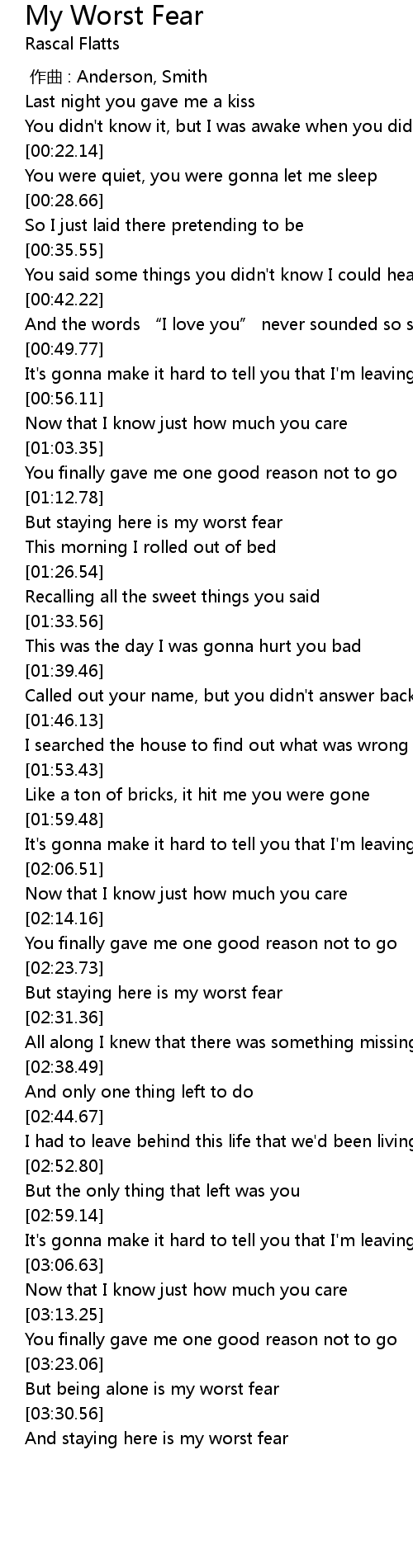 | [00:50.57] | It' s gonna make it hard to tell you that I' m leaving |