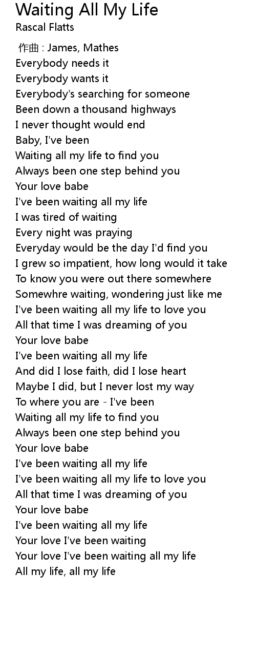 | [00:45.110] | I' ve been waiting all my life |