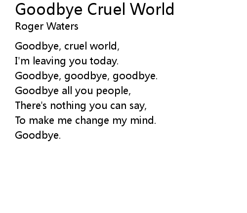 | Goodbye, cruel world, | |