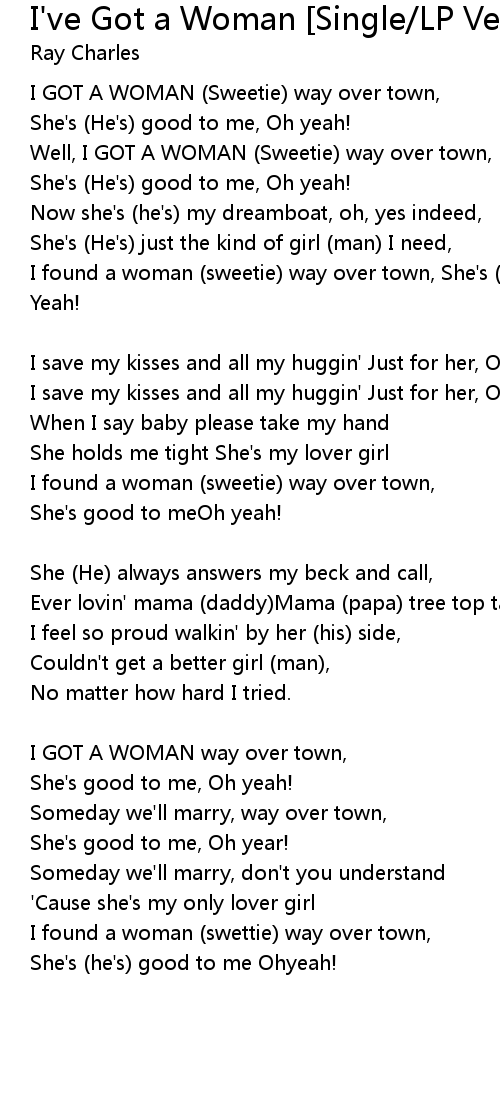 I found a woman (sweetie) way over town, She's (He's) good to me Oh |