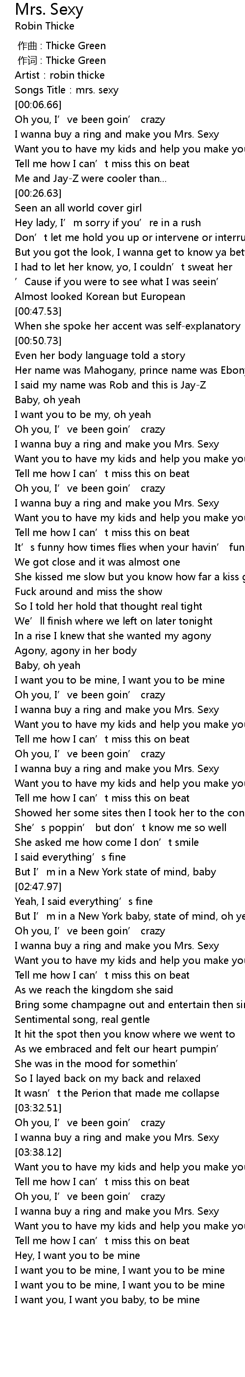 | [00:15.19] | I wanna buy a ring and make you Mrs. Sexy |