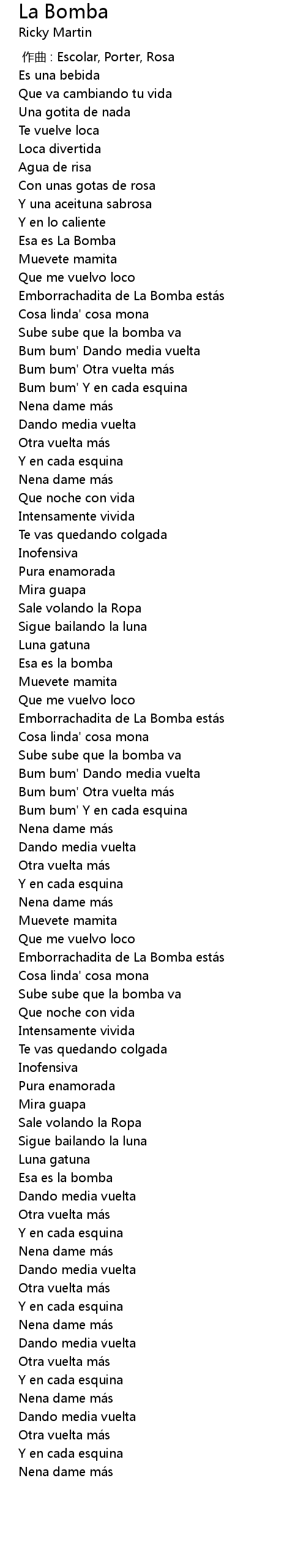 | [01:58.380] | Bum bum' Otra vuelta má s |
