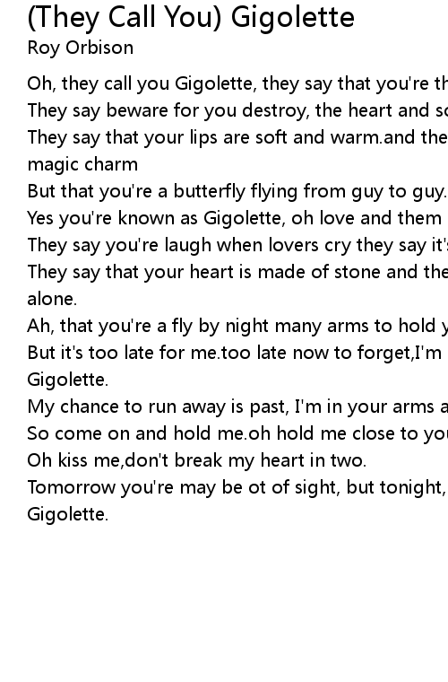But it's too late for me.too late now to forget,I'm under the spell of Gigolette. |
