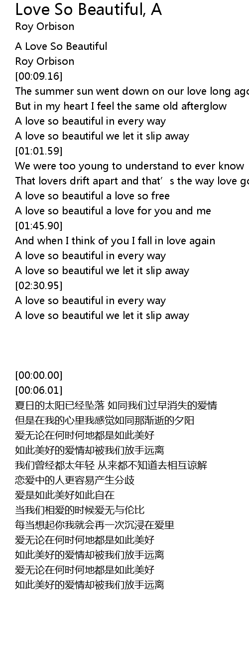 | [00:00.00] | A Love So Beautiful |