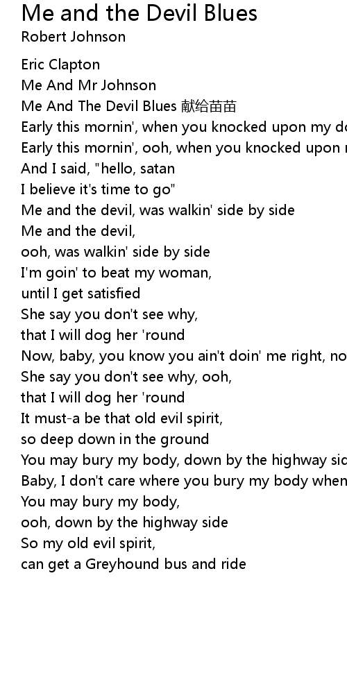 | [00:03.46] | Me And The Devil Blues 献给苗苗 |