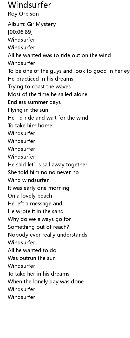 | [03:03.93] | Windsurfer |