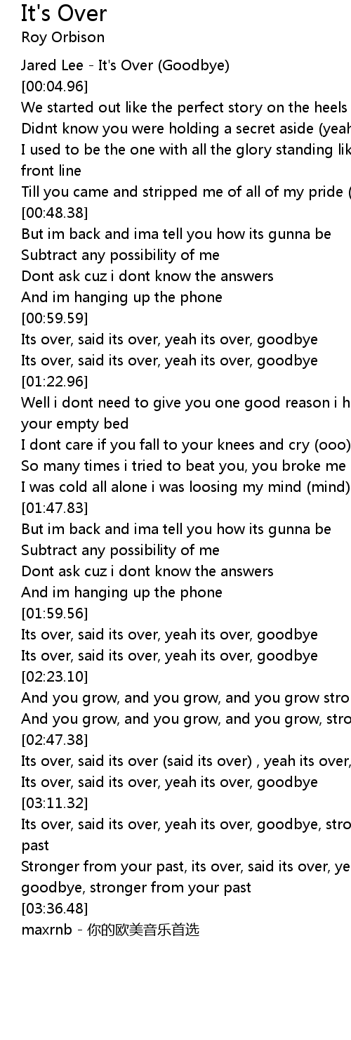 | [03:00.04] | Its over, said its over, yeah its over, goodbye |