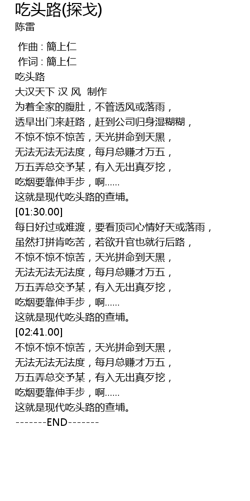 | [00:00.00] | 吃头路 |