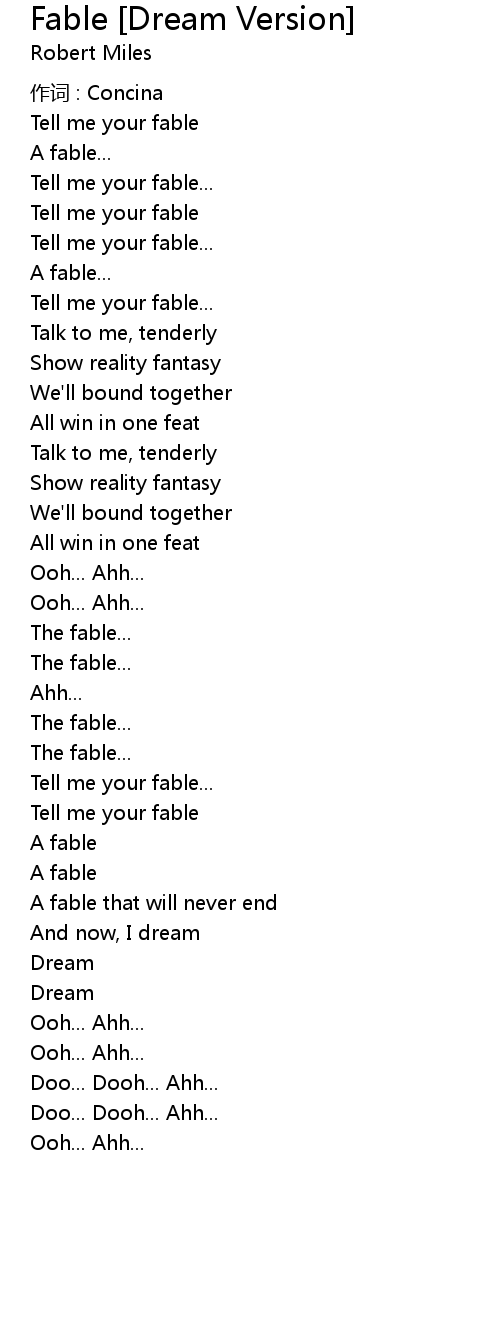 | Tell me your fable | |