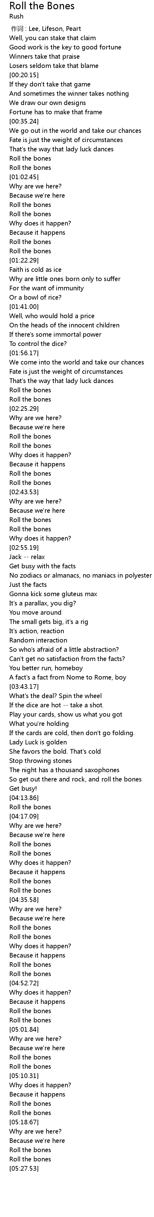 | [02:32.97] | Roll the bones |