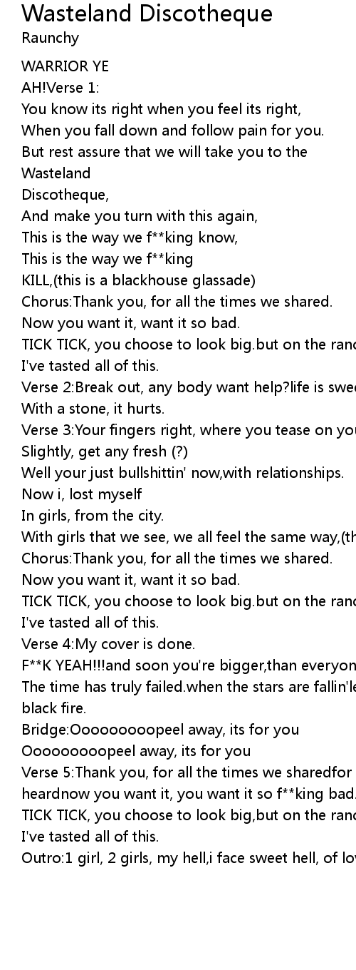 Verse 5:Thank you, for all the times we sharedfor the words that should of been heardnow you want it, you want it so f**king bad. (so f**king bad) |