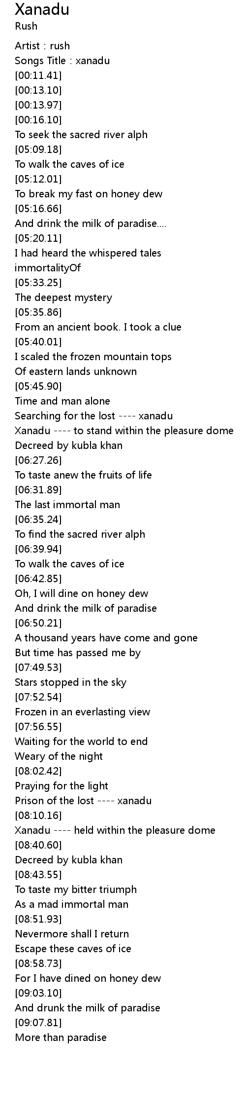 | [05:50.85] | Searching for the lost ---- xanadu |