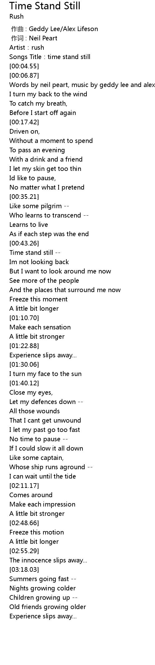 | [00:01.81] | Songs Title: time stand still |