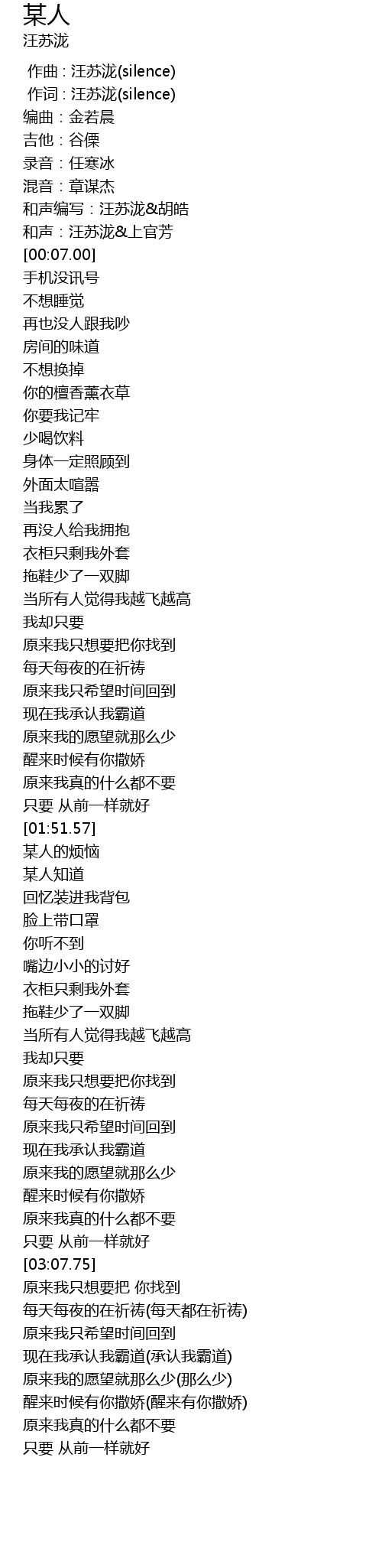 | [00:00.364] | 作词 : 汪苏泷(silence) |