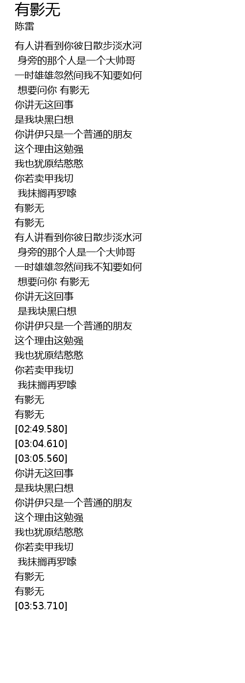 | [03:13.930] | 你讲伊只是一个普通的朋友 |