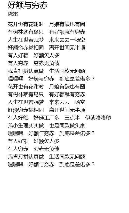 | 好额穷赤拢相同 离开世间无半项 | |