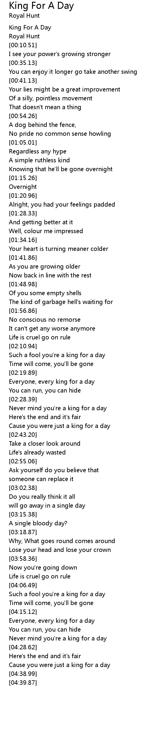 Never mind you're a king for a day |