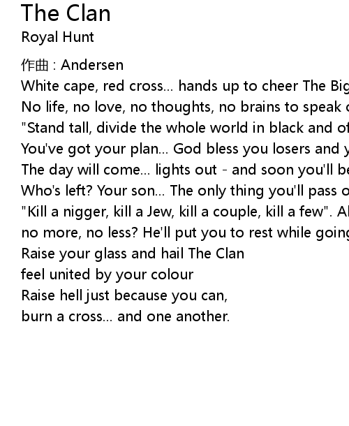 | " Kill a nigger, kill a Jew, kill a couple, kill a few". Alright | |