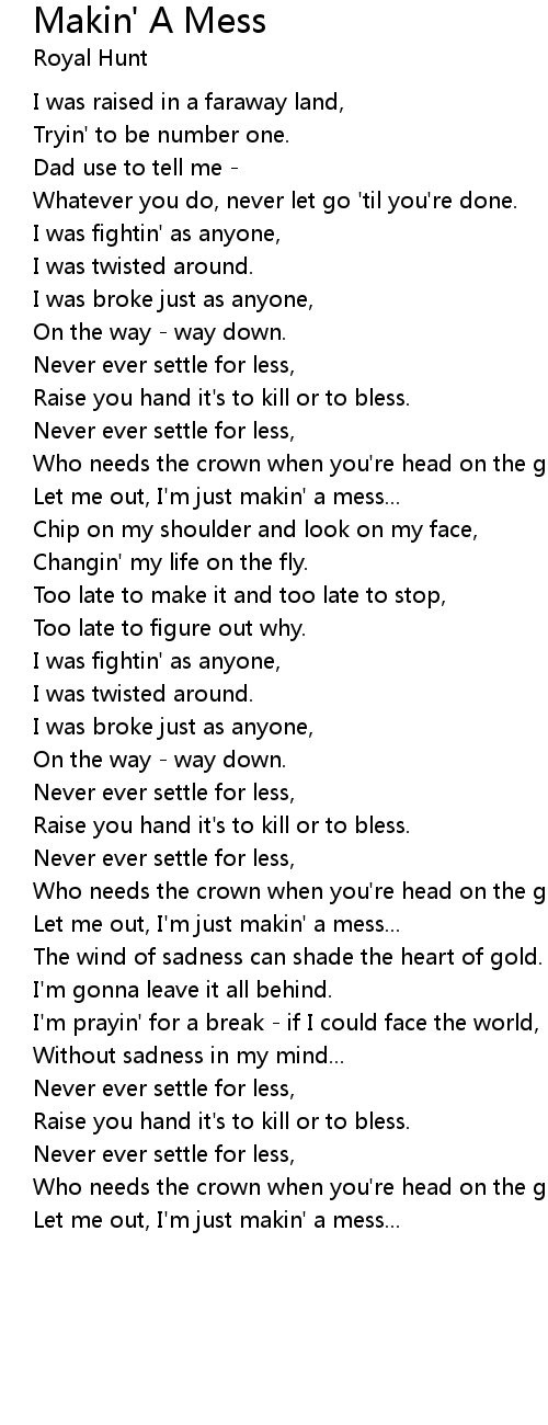 Let me out, I'm just makin' a mess... |