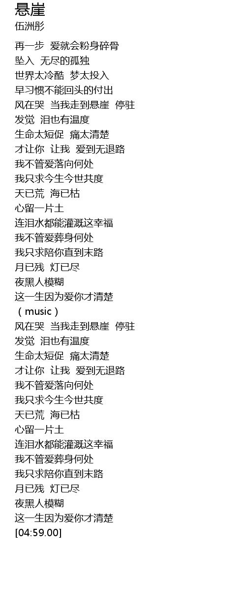 | [03:26.00] | 风在哭 当我走到悬崖 停驻 |