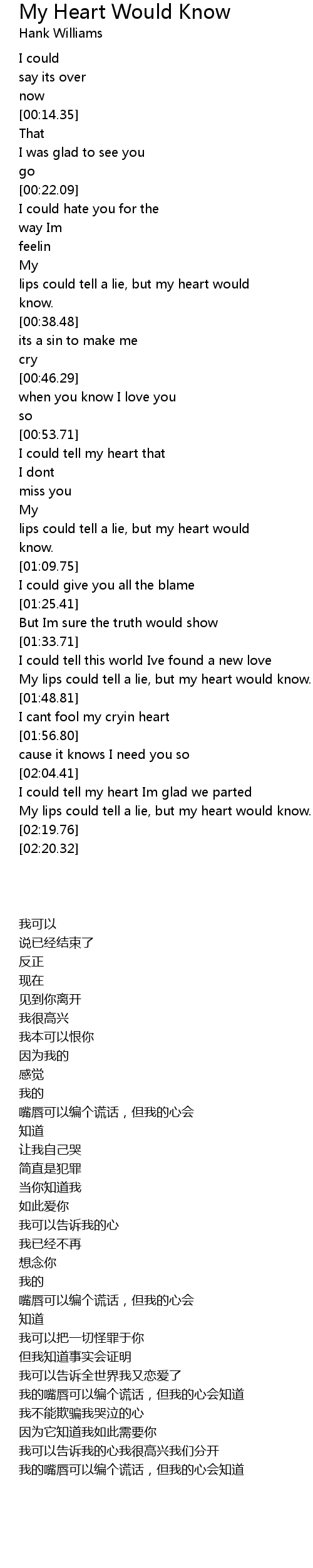 My lips could tell a lie, but my heart would know. |