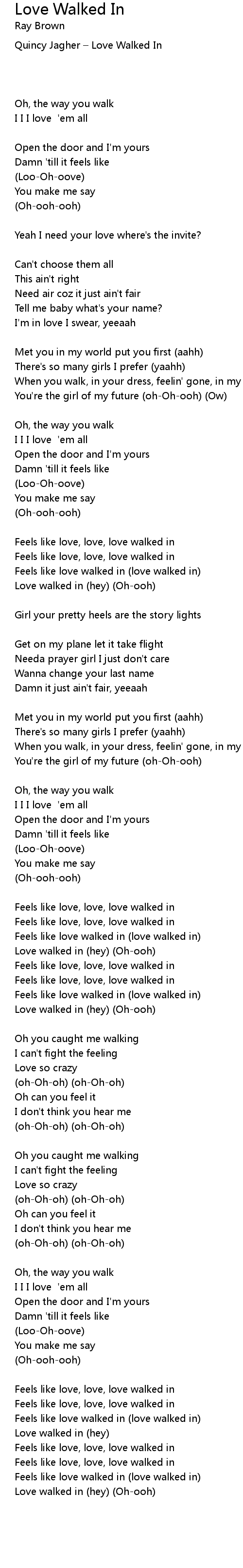 | When you walk, in your dress, feelin' gone, in my chest | |
