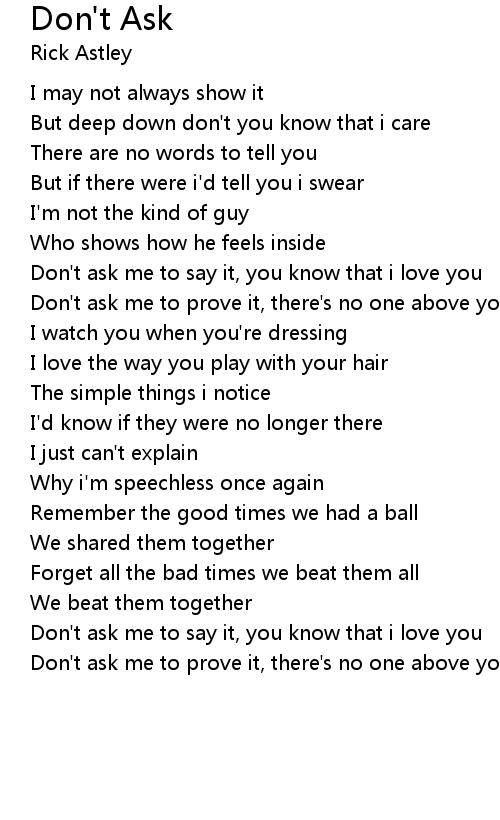 Don't ask me to say it, you know that i love you |