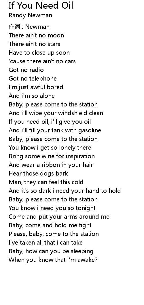 | Song | If You Need Oil |