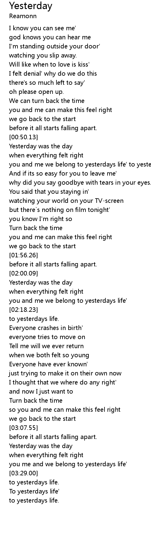 | [03:39.62] | To yesterdays life' |