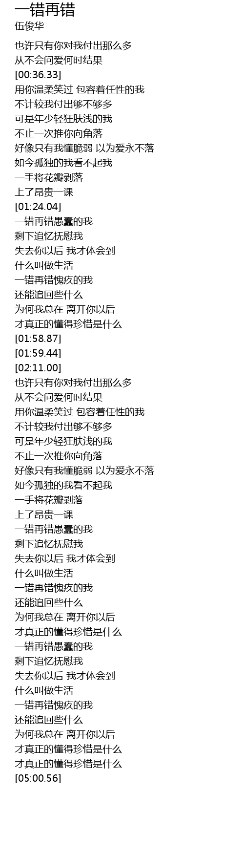 | [01:40.37] | yi cuo zai cuo kui jiu de wo |