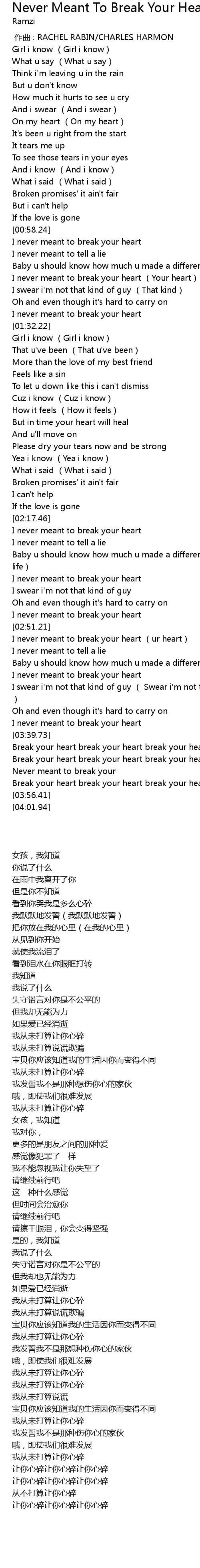 | [03:17.22] | I never meant to break your heart |