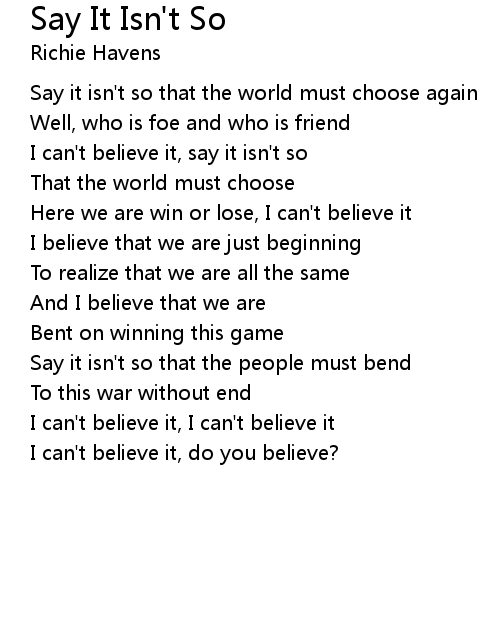 | I can't believe it, say it isn't so | |