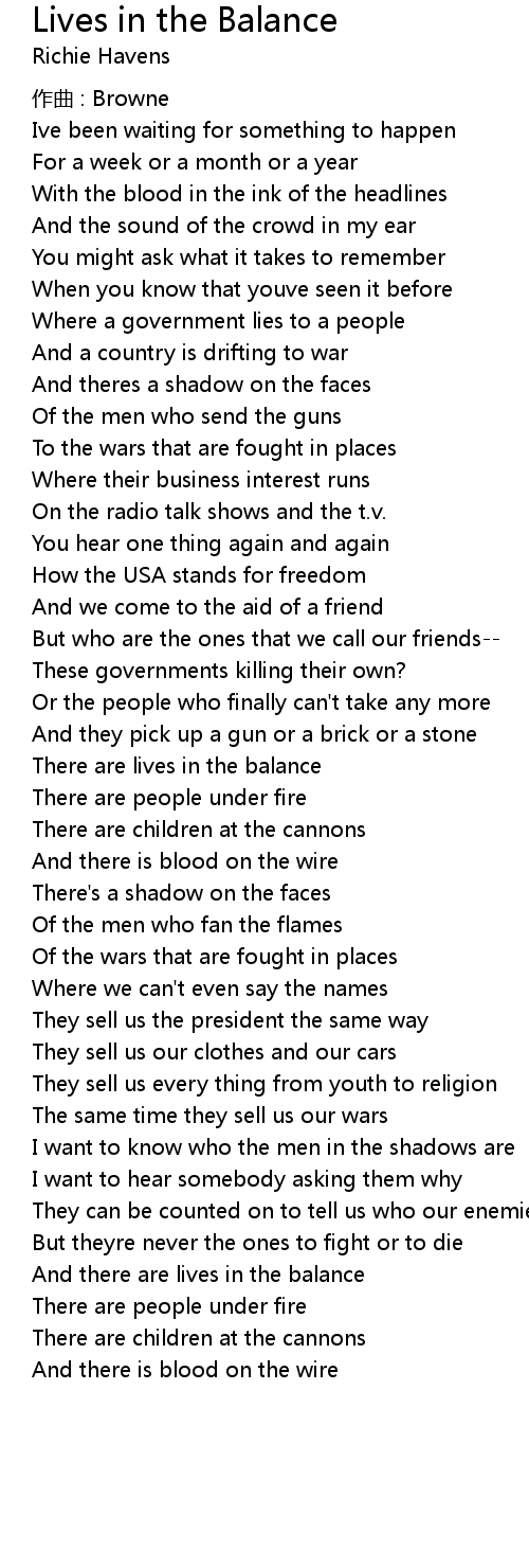 | Song | Lives in the Balance |