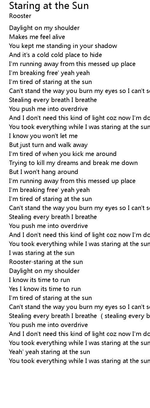 | [00:46.65] | I' m tired of staring at the sun |