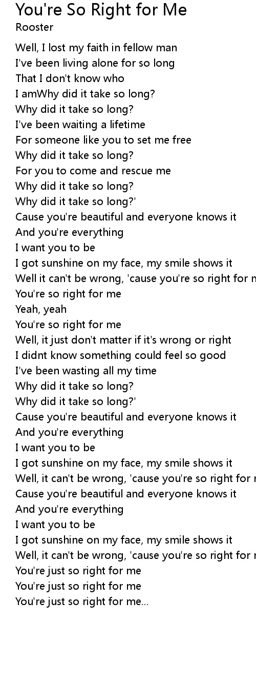 | Well, it can't be wrong, 'cause you're so right for me' | |