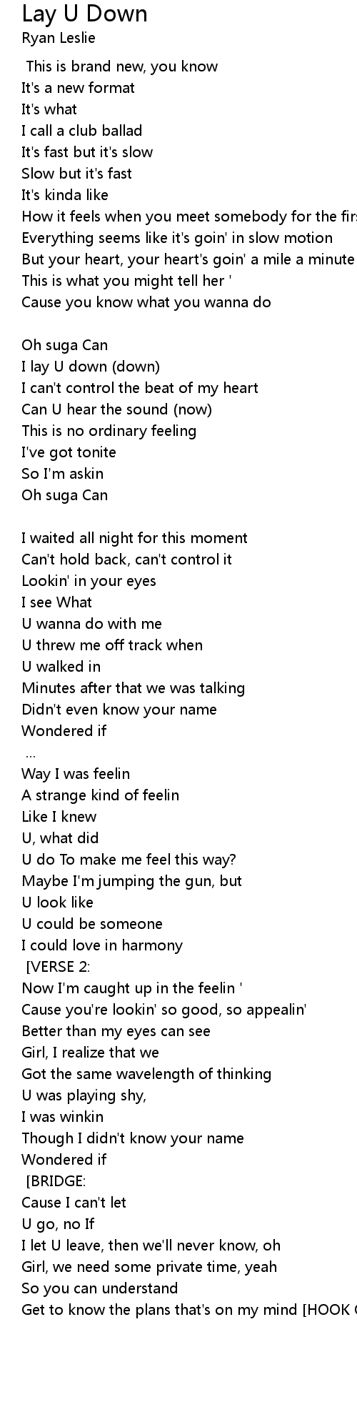 I lay U down (down) |