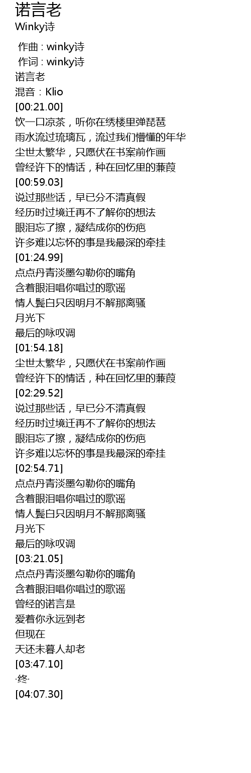 | [00:00.00] | 作曲 : winky诗 |