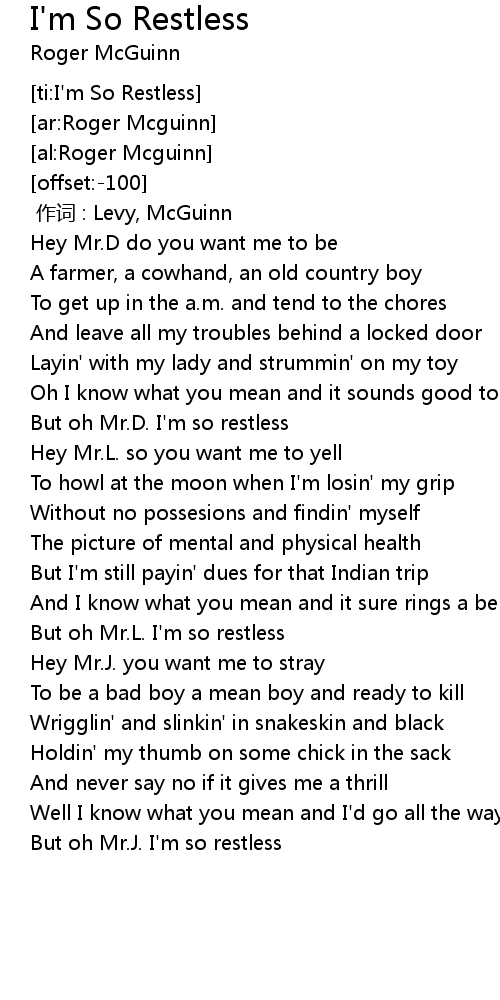 | [00:38.49] | But oh Mr. D. I' m so restless |