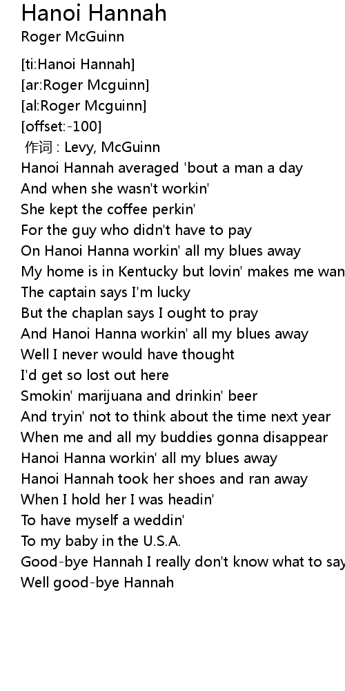 | [01:59.91] | Hanoi Hannah took her shoes and ran away |