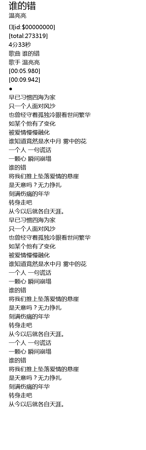 | [00:03.998] | gē shǒu wēn liàng liàng |