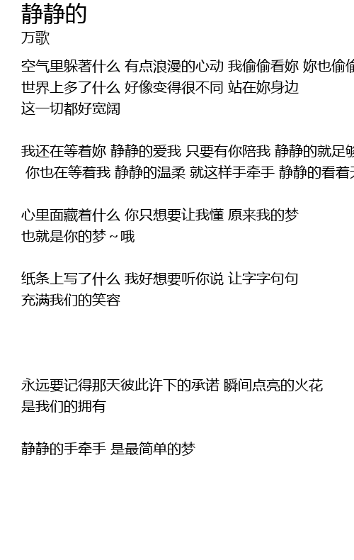 | 你也在等着我 静静的温柔 就这样手牵手 静静的看着天空 | |