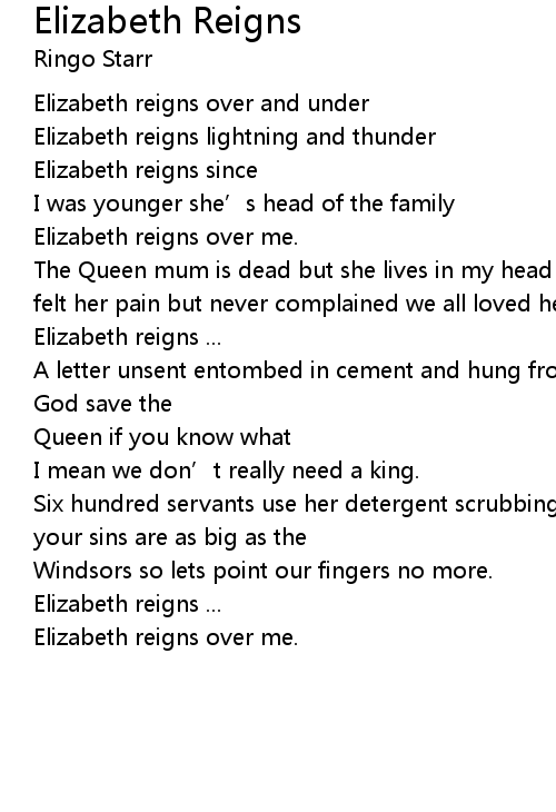 | Song | Elizabeth Reigns |