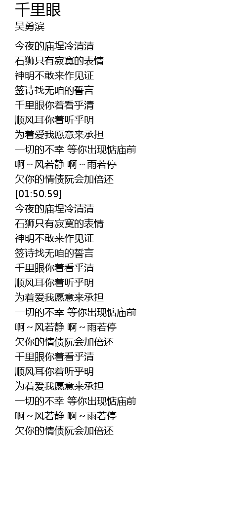 | [03:23.33] | 千里眼你着看乎清 |