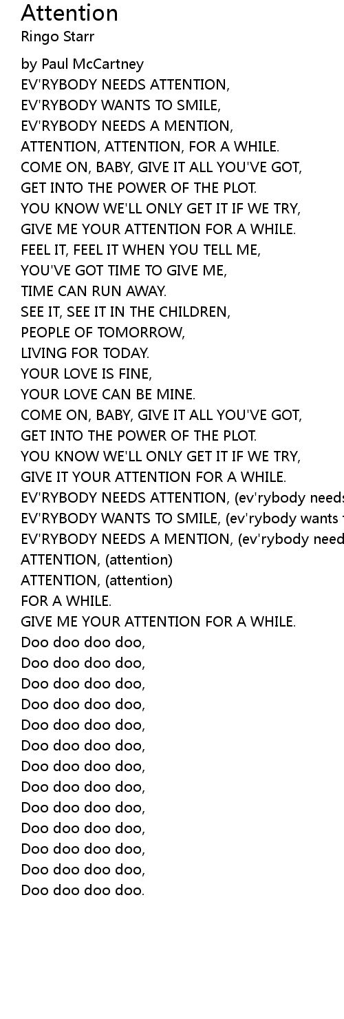 EV'RYBODY NEEDS ATTENTION, (ev'rybody needs attention) |