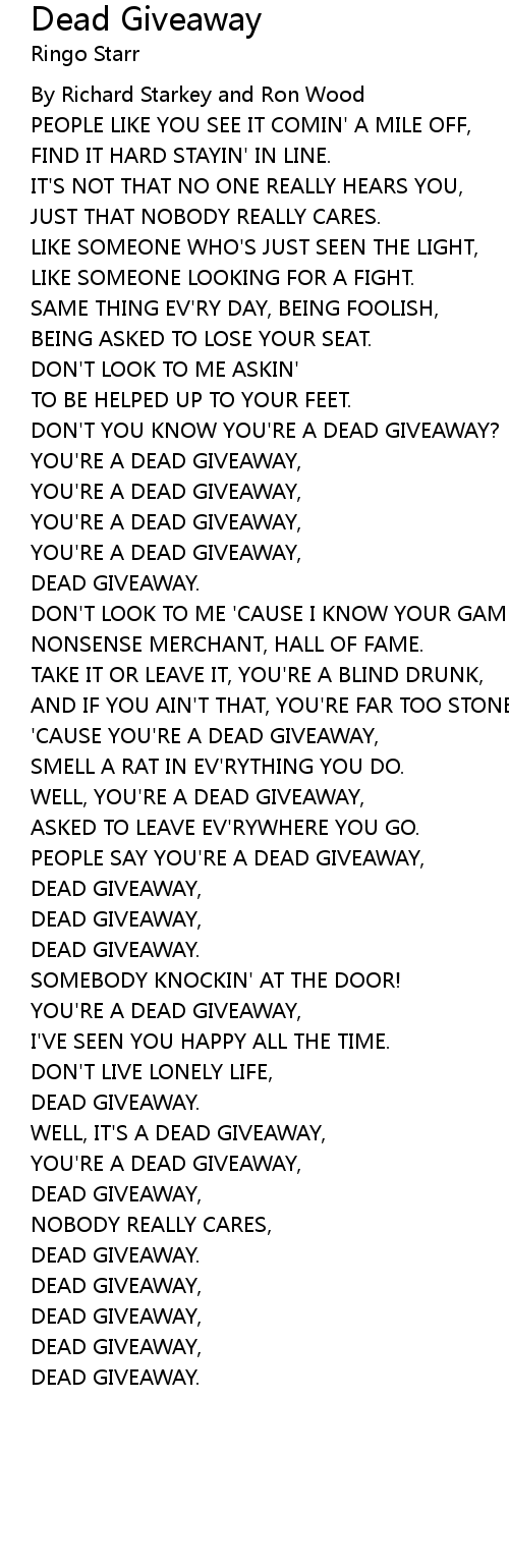 DON'T YOU KNOW YOU'RE A DEAD GIVEAWAY? |