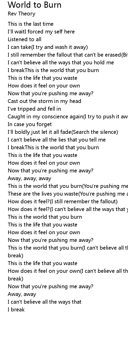 This is the world that you burn(I can't believe all the ways that you hold me I break) |