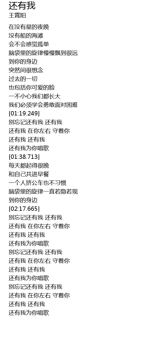 | [02:37.864] | bié wàng jì hái yǒu wǒ hái yǒu wǒ |