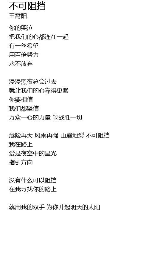 | 危险再大 风雨再强 山崩地裂 不可阻挡 | |