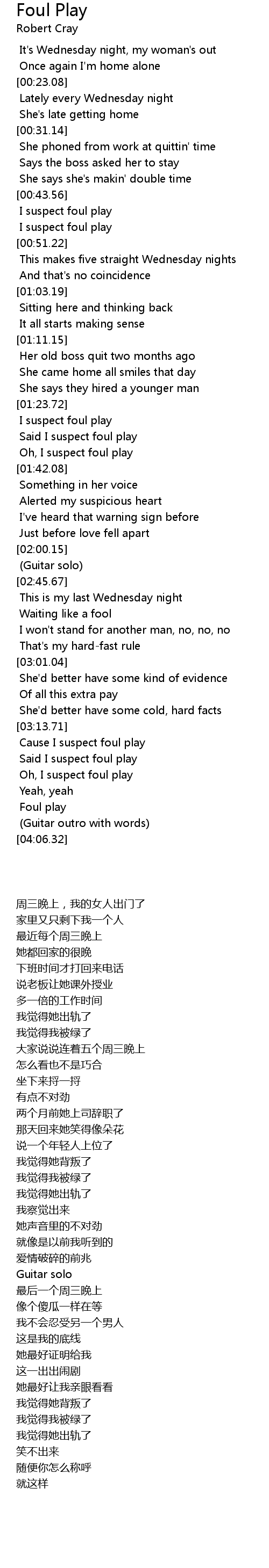 Cause I suspect foul play |