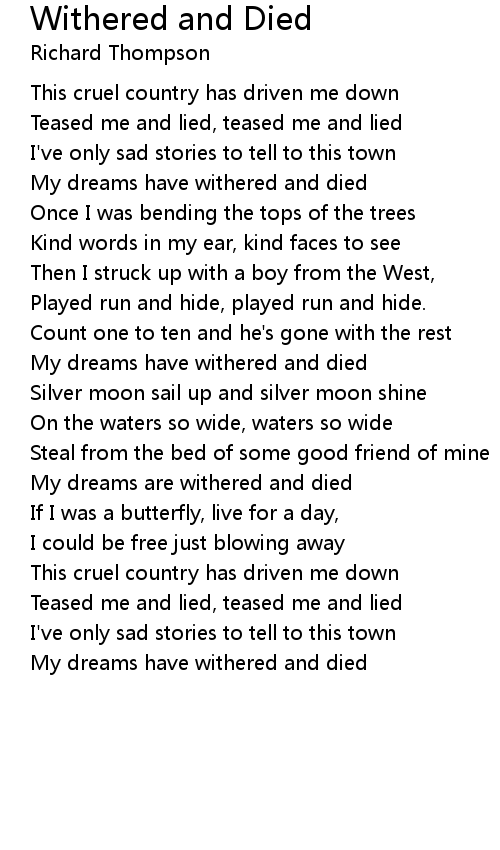 My dreams are withered and died |